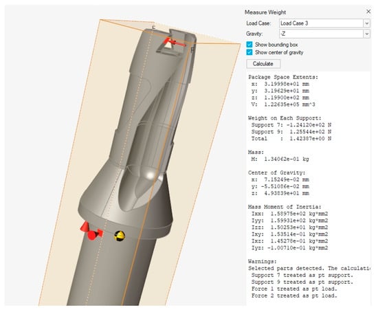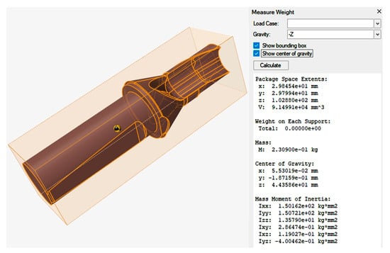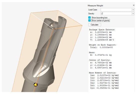 In Figure 13, the mass-centering characteristics of the original, solid model of the drill body are shown, and Figure 14 shows the resulting optimized model of the drill body.