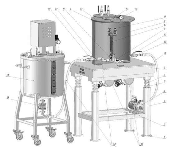 The essence of the vibration-vacuum method is illustrated in Figure 15, which shows a digital model of the developed device.