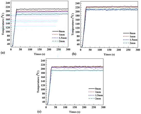 Thermal history results of (a) A samples, (b) B samples, and (c) C samples.