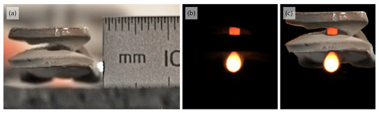 The use of a stopped-down lens during recording, combined with the short exposure time resulting from the high frame rate, limits the visible field to the glowing wire and reflections, rendering the surrounding environment black in the images. Despite the insights that can be derived from the data captured by the camera, the partial occlusion of the wire tip by the induction coil restricts the possibilities for detailed analysis. Thus, depending on the selected process parameters, the area of the wire where droplet detachment occurs may be obscured. Figure 4 illustrates the camera view and the resulting shot of the wire.