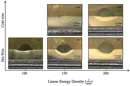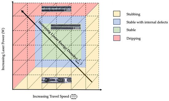 Sufficient energy input in W-LDED processes is crucial to achieve high-quality deposition, ensuring that the wire melts completely and fuses effectively to the substrate. Incorrect energy input can lead to defect formation, which prevents further fabrication [54,55].