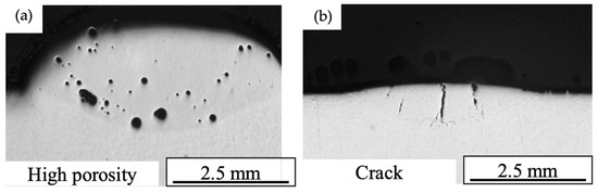 Low dilution is generally preferable as it indicates minimal mixing of the substrate with the fed wire, leading to a more stable and reliable process (Figure 12a). In contrast, high dilution can result in poor bead appearance and increased susceptibility to defects such as pores and cracks (Figure 12b) [58,89].