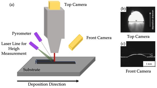 - Ocylok, S.; Alexeev, E.; Mann, S.; Weisheit, A.; Wissenbach, K.; Kelbassa, I. Correlations of Melt Pool Geometry and Process Parameters during Laser Metal Deposition by Coaxial Process Monitoring. In Physics Procedia; Elsevier B.V.: Amsterdam, The Netherlands, 2014; Volume 56, pp. 228–238. [Google Scholar] [CrossRef]