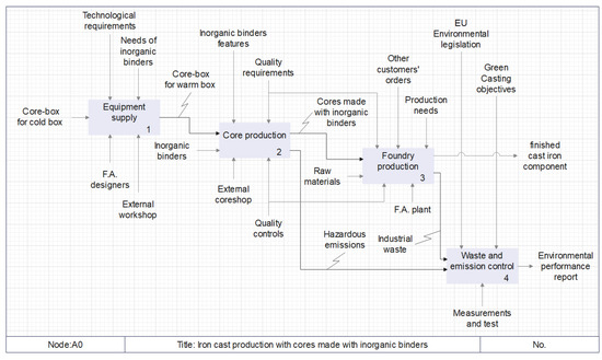 The A0 map, realised using IDEF0, includes all the main processes needed for the production of finished cast-iron components.
