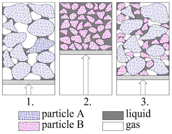It follows from this note that for the testing of the extrusion of pastes, the primary effect is the extrusion pressure . Then, the wet particulate material can be considered as a quasi-continuous medium, i.e., a paste. The influence of the consolidation of the skeleton formed by the particulate substance is also manifested. Its consolidation is defined by the voidage or porosity . This parameter, together with the liquid content, indicates the degree of saturation of the pores by the liquid [15].