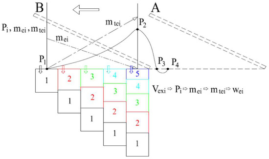 After the experiment, the extruded material is located in the control elements (Figure 7). There is the smallest amount of this material in the control volume and its properties correspond to the pressure . The weight of the extruded material increases from to . This is due to the fact that each control volume contains all the material from the previous elements and the material also extruded into this volume , which is the weight .