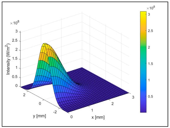 Intensity distribution of the laser beam, defined as a surface heat source.