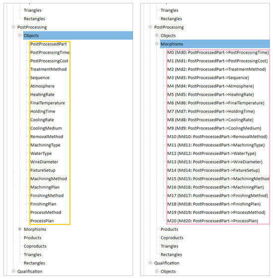 Based on the description above, a category for post-processing named was constructed. This category consists of twenty-two objects and twenty-one morphisms. The details are shown in Figure 6.