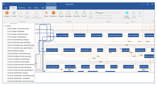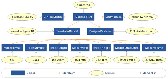 The semantically enriched model of LPBF part data was developed using CatLab, a CT-based modelling software tool that is currently under development by the authors’ research group. A partial visual representation of the developed model is shown in Figure 8.