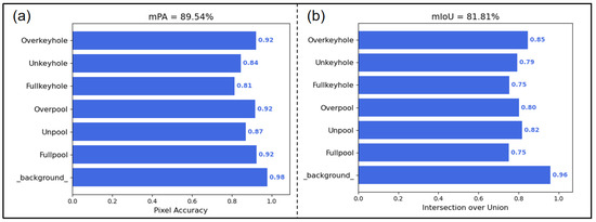 Figure 9. U-Net performance evaluation indicators. (a) MPA; (b) MioU.