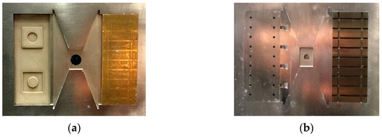 Molding tool with PEEK mold insert type 2: (a) nozzle side; (b) ejector side.