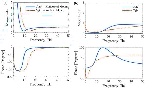 Frequency response of compensation filters. (a) Model-based technique; (b) non-model-based techniques. Note: and are designed for both horizontal and vertical mounting configurations.