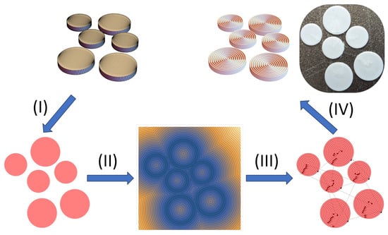 Workflow: (I) Three-dimensional (3-D) geometry slicing and two-dimensional (2-D) projection, (II) generation of signed distance fields, (III) clustering and distance minimization for optimal toolpaths, (IV) generation of G-Code and additive manufacturing by means of the computed toolpaths.