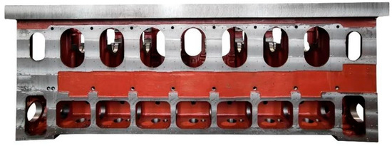 In order to verify the practicality of this method, the machining process of the fuselage of a particular model of a medium-speed marine diesel engine is taken as an example, as shown in Figure 5. The fuselage has a complex structure and many processes involving multiple equipment, multiple stations, and multiple datums. The machining process of the fuselage is affected not only by cutting parameters and machining factors such as machine tools, cutting tools, and fixtures, but also by the output quality error of the previous process. Therefore, it is difficult to objectively and effectively control the quality of critical quality features that affect the quality of fuselage machining in actual machining, resulting in insufficient final quality control. In order to reasonably determine the fuselage machining process and achieve control of the machining quality, it is necessary to predict the critical quality features in machining.