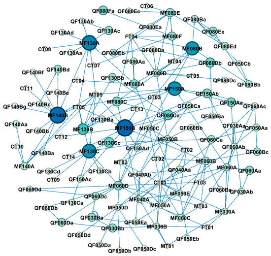According to the size of the PR value of each node, using Gephi—0.9.7 software, the fuselage error transfer visualization network is established as shown in Figure 6. Where the size of the network node represents the size of the PR value, i.e., the larger the network node, the higher its influence will be.