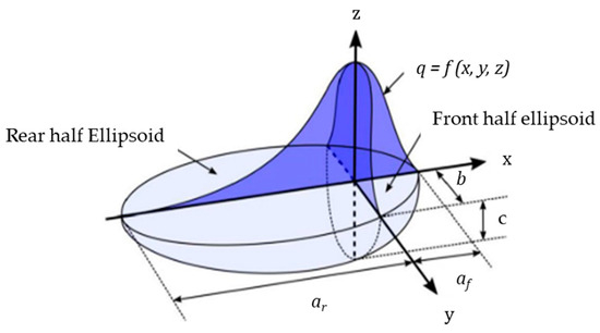 Schematic representation of Goldak’s double-ellipsoidal heat source model [33].