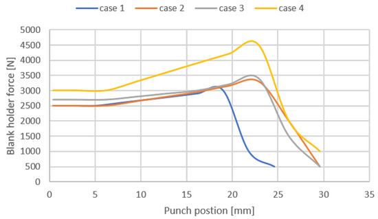 | Blank holder force [N] | 650; 850; 1050; 1250; linear decrease or user-defined 1 |