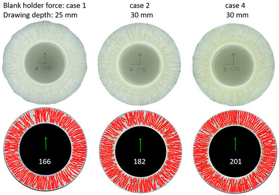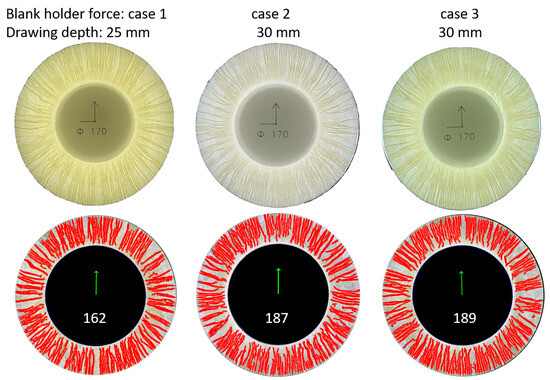 - Experimental results show that material properties and drawing clearance significantly influence wrinkle distribution and quantity. Increasing blank holder force during the deep-drawing process resulted in a higher number of wrinkles.