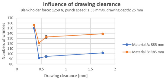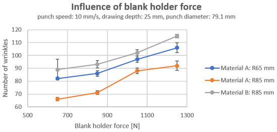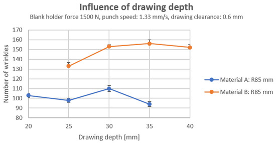 3.2. Parameters Influencing the Number of Wrinkles in Deep Drawing