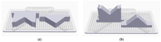 Despite these advancements, the full potential of polymer-based rapid tooling is still being explored, particularly regarding the influence of printing parameters on the performance of 3D-printed tools. One of the critical factors that affects the mechanical properties of printed tools is the printing orientation. In additive manufacturing, the alignment of layers during printing can have a significant impact on the tool’s strength, dimensional accuracy, and surface quality [21,22,23].