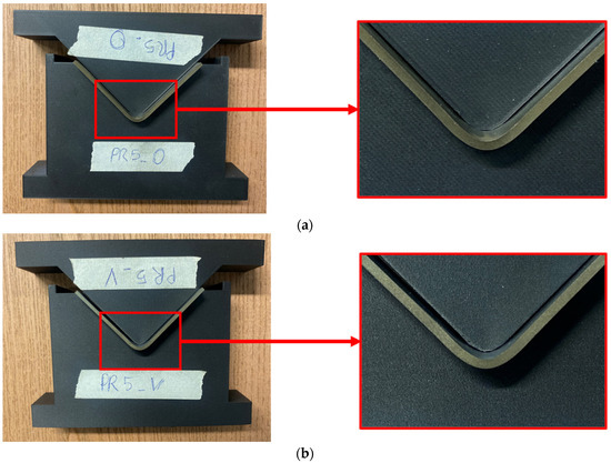 Moreover, it was found that these polymer tools undergo deformation during the bending phase. It has been observed and demonstrated that this deformation mainly occurs in areas far from the actual working zone, where the tool is free to deform; this means that in the bending area, there were no deformations, so it is possible to produce a 90° angle.