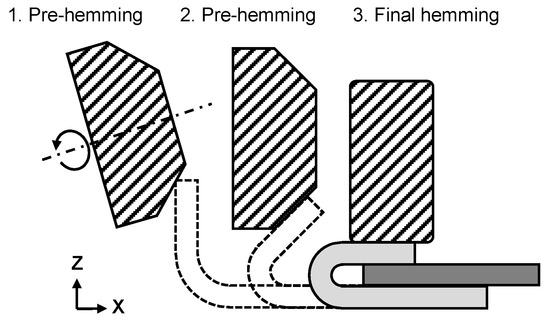 - Abe, Y.; Ijichi, W.; Mori, K.-i.; Nakagawa, K. Hemming with Pre-Bent Inner Sheet for Joining Ultra-High Strength Steel Sheets of Automobile Parts. J. Manuf. Mater. Process. 2020, 4, 77. [Google Scholar] [CrossRef]