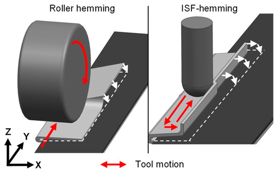 Tool motions of roller hemming (left) and ISF hemming (right) [20].