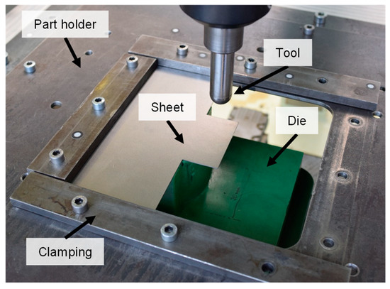 - Steinfels, D.; Reitmaier, L.M.; Bailly, D.B. Preliminary experimental investigation on hemming of curved edge parts by means of incremental sheet forming. Int. J. Adv. Manuf. Technol. 2024, 133, 4879–4891. [Google Scholar] [CrossRef]