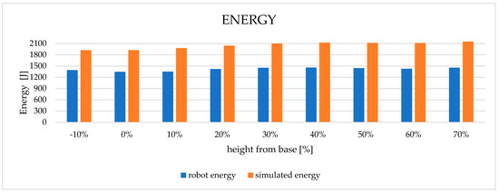 Robots equipped with these balancing mechanisms can perform vertical movements more efficiently. Conversely, robots without such systems exhibit higher energy consumption during lifting because they do not have additional support for weight balancing. The experimental results suggest that robots with similar balancing mechanisms achieve similar energy consumption results, allowing for the generalization of these findings to other robots with similar balancing systems [45].