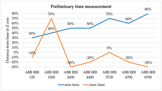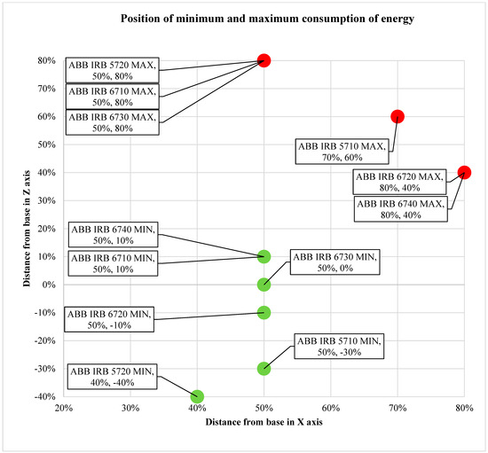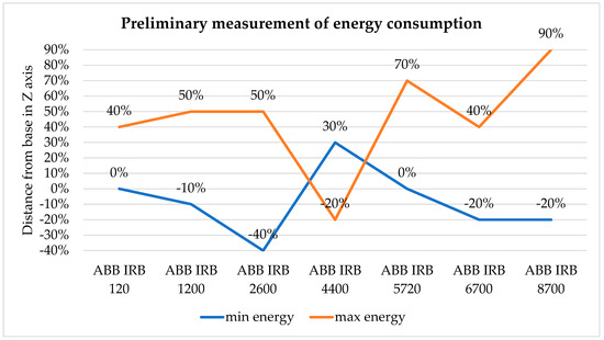 For research with a focus similar to this article, one can highlight the research performed by Rassõlkin et al. [61].They partly dealt with the change in the working height along the Z-axis and its influence on electrical consumption. However, it should be noted that their meta-analysis was carried out on only one industrial robot, which changed its working height along the Z-axis when performing a nav-designed trajectory in the shape of a figure of eight. Thus, it can be concluded that the measurement of energy consumption was not only performed at the chosen level according to the author’s state.