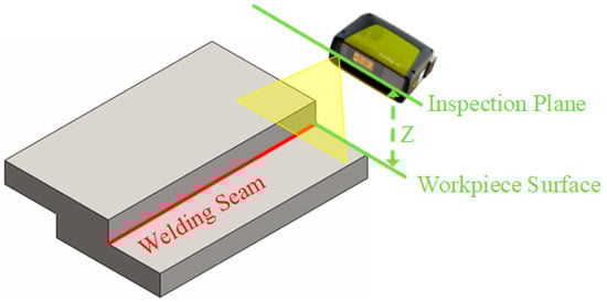 For closed joints, the intersection of the workpiece surface and the workpiece side plane is the welding seam, i.e., the welding seam is one of the edge lines extracted in the previous subsection. For the collected lap joint point clouds, in this paper, welds are identified based on the 3D structure of the welded joints. As shown in Figure 8, the welding seam is an edge line away from the inspection plane of the laser vision sensor; therefore, the edge line with the smaller z-mean is selected as the weld seam by comparing the z-means of the extracted edge lines.