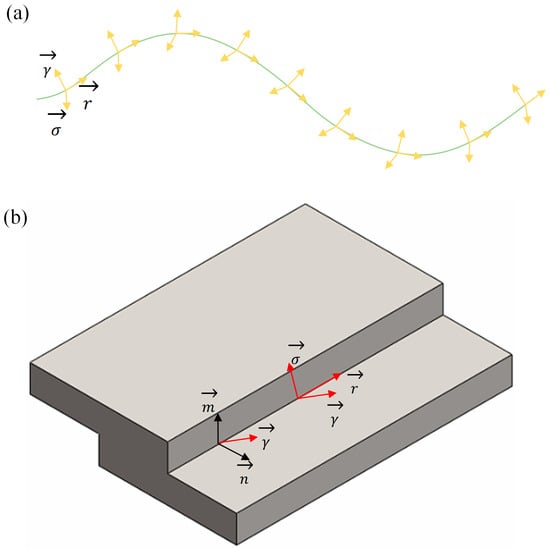 Furthermore, in order to maintain a consistent angle between the welding torch axis and the workpiece plane throughout the welding process, it is imperative to compute the vector . This crucial calculation ensures stability during welding. As shown in Figure 9, the vector can be obtained by using Equation (7):
