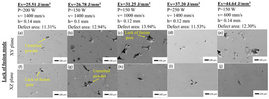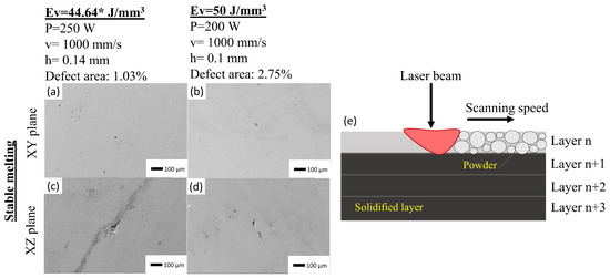 - Smith, C.; Hommer, G.; Keeler, M.; Gockel, J.; Findley, K.; Brice, C.; Clarke, A.; Klemm-Toole, J. Assessing volumetric energy density as a predictor of defects in laser powder bed fusion 316L stainless steel. JOM 2024. [Google Scholar] [CrossRef]