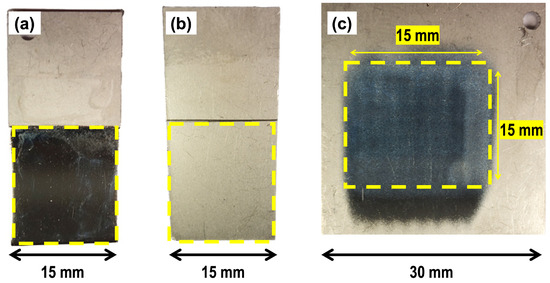 The effectivity of PEP, PEP-Jet, and EP in reducing surface roughness was investigated. Figure 2 presents the optical macrographs results of EP, PEP, and PEP-Jet treatments on stainless steel samples with the same electrical input energy on the surface used for all three treatments. Figure 2a underwent electropolishing for 900 s, while Figure 2b was polished using plasma electrolytic polishing for 17 s, and Figure 2c using plasma electrolytic polishing with a jet for 52 s. The durations were chosen to ensure equal energy input into the surface across the three processes. Figure 3 shows images illustrating the polishing outcomes of PEP at various process durations that are closer to the applicable process times in reality. It is evident that the surface quality improves with extended exposure to the PEP process and this is proved by the results.
