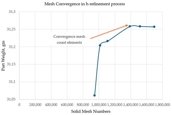 Meshing convergence of part weight and solid mesh numbers.