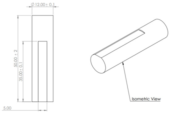 Workpiece stability during friction welding is of the highest importance to guarantee that the weld interface from both sides is in perfect alignment [22,23,24]. Pressure (frictional and forging) was applied manually compared to a large-scale, friction welding machine that employs a hydraulic pressure system. Additional machining was required on the non-rotating workpieces of the assembly so that both M5 grub screws hold the metal rods in place, replicating the jaws of a power drill chuck. A flat face of 35 mm × 5 mm (length × width) is machined to precise dimensions needed for this arrangement (Figure 2).