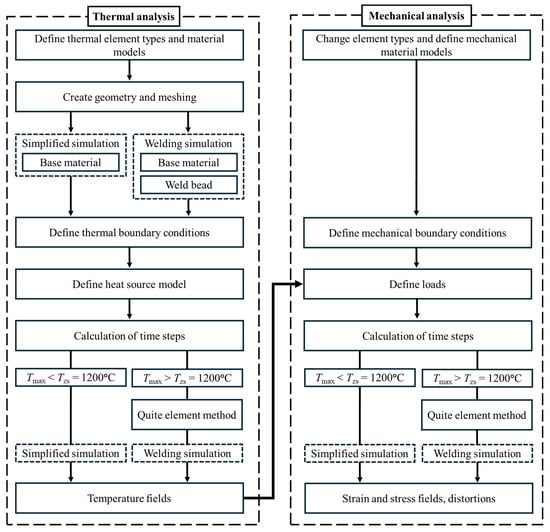 Framework of the thermomechanical analysis for both simplified and welding simulation.