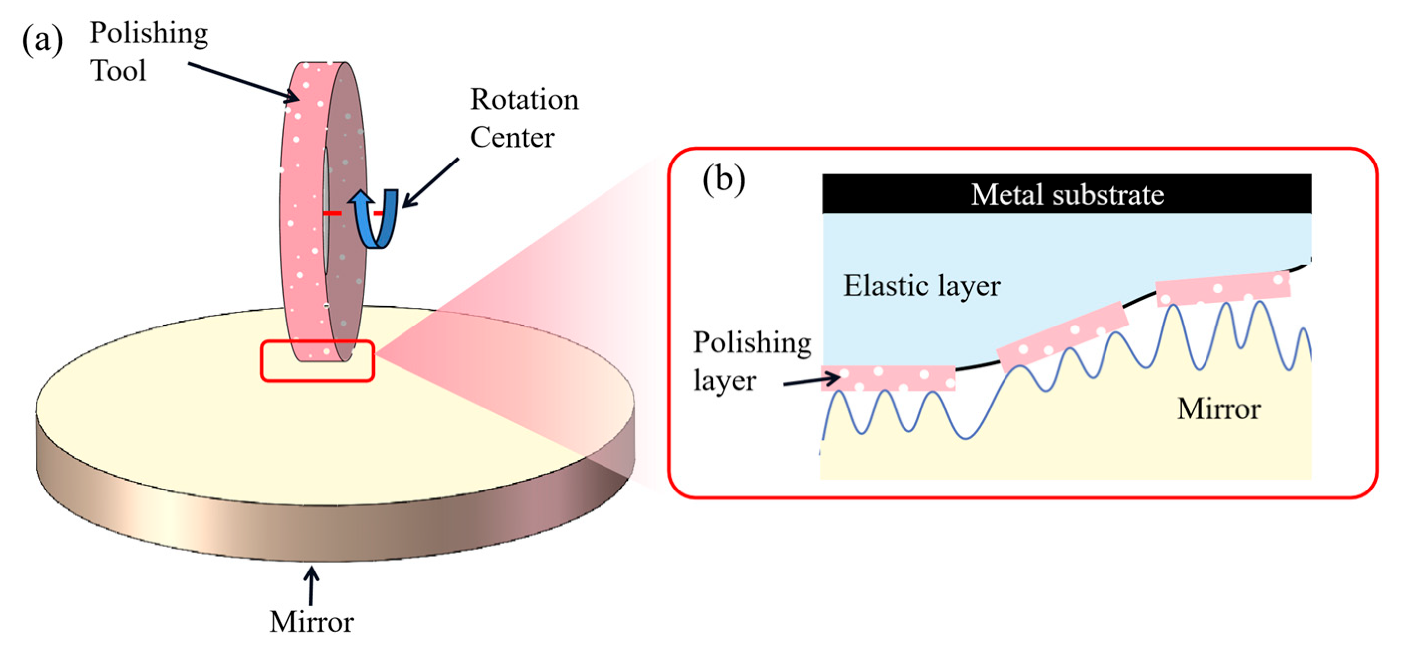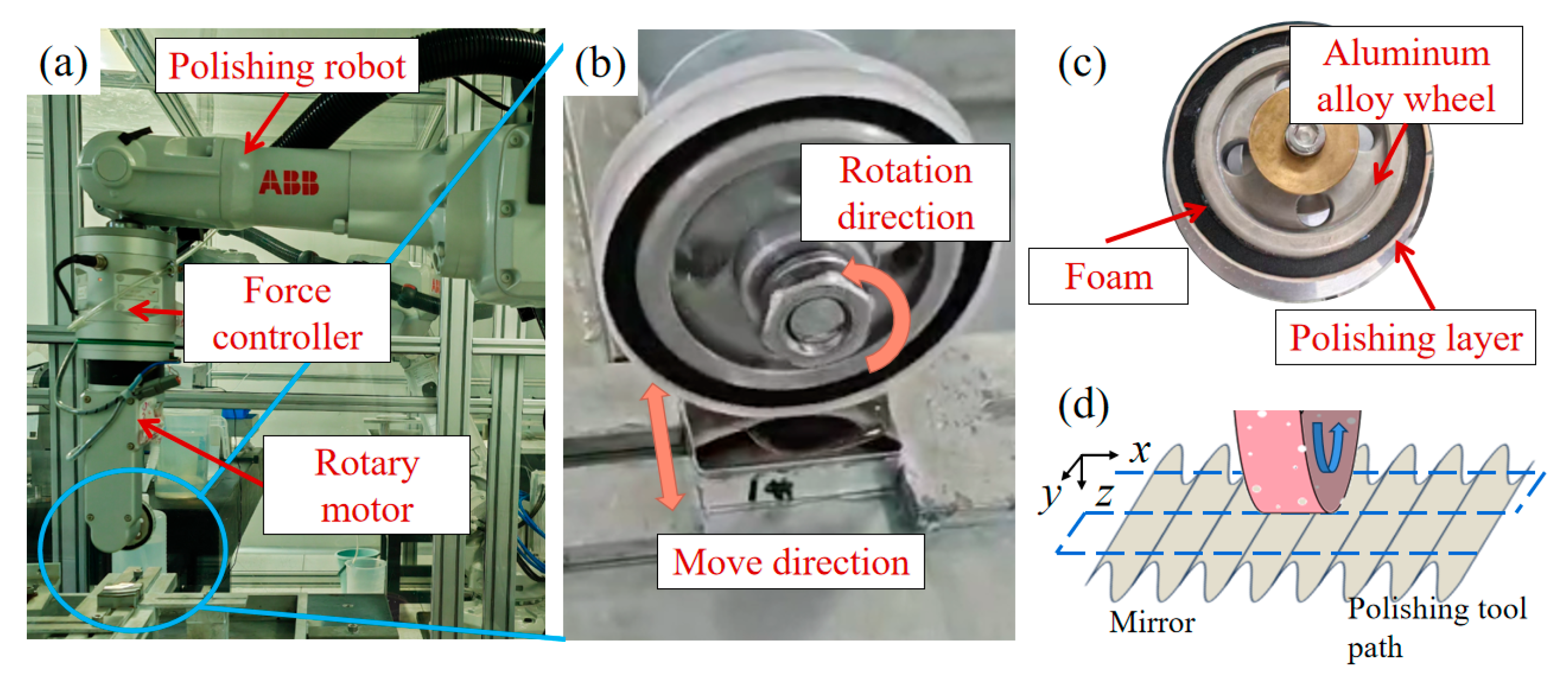 - Feng, H.; Huang, L.; Huang, P.; Liu, J.; He, X.; Peng, Y. Review on high efficiency and high precision compliant polishing method. Int. J. Adv. Manuf. Technol. 2024, 132, 2091–2128. [Google Scholar] [CrossRef]