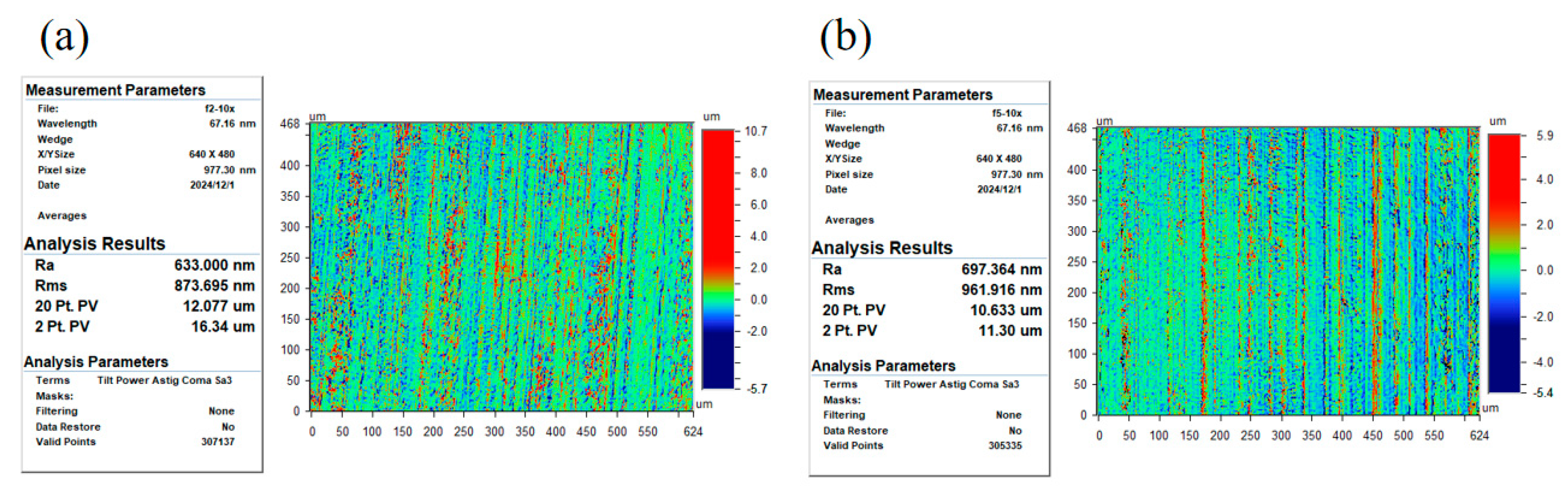 - Peng, W.; Jiang, L.; Huang, C.; Chen, Y.; Tian, Y.; Han, Y.; Zhang, S.; Qian, L. Surface roughness evolution law in full-aperture chemical mechanical polishing. Int. J. Mech. Sci. 2024, 277, 109387. [Google Scholar] [CrossRef]