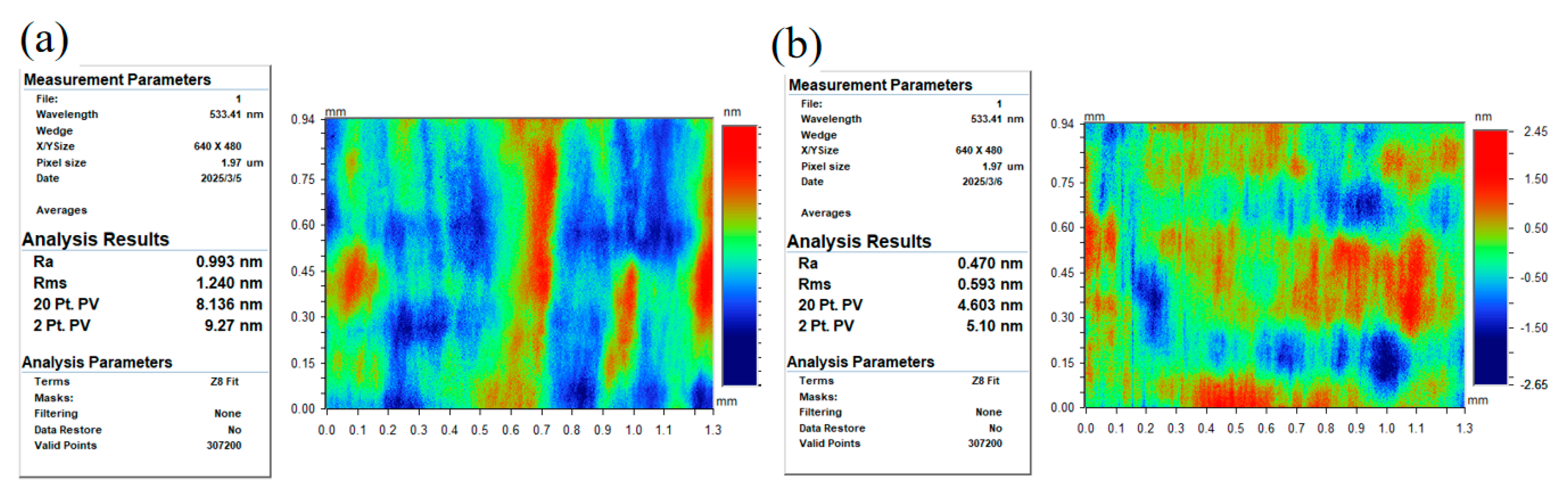 - Xue, J.; Chu, Y.; Liu, Y.; Liao, Q.; Chen, W.; Wu, Y.; Ding, F.; Wang, B.; Li, G.; Wang, D.; et al. Influence analysis of surface particulate and molecular contamination in CMP process of mandrel for EP focusing mirror. Radiat. Detect. Technol. Methods 2025, 9, 344–354. [Google Scholar] [CrossRef]