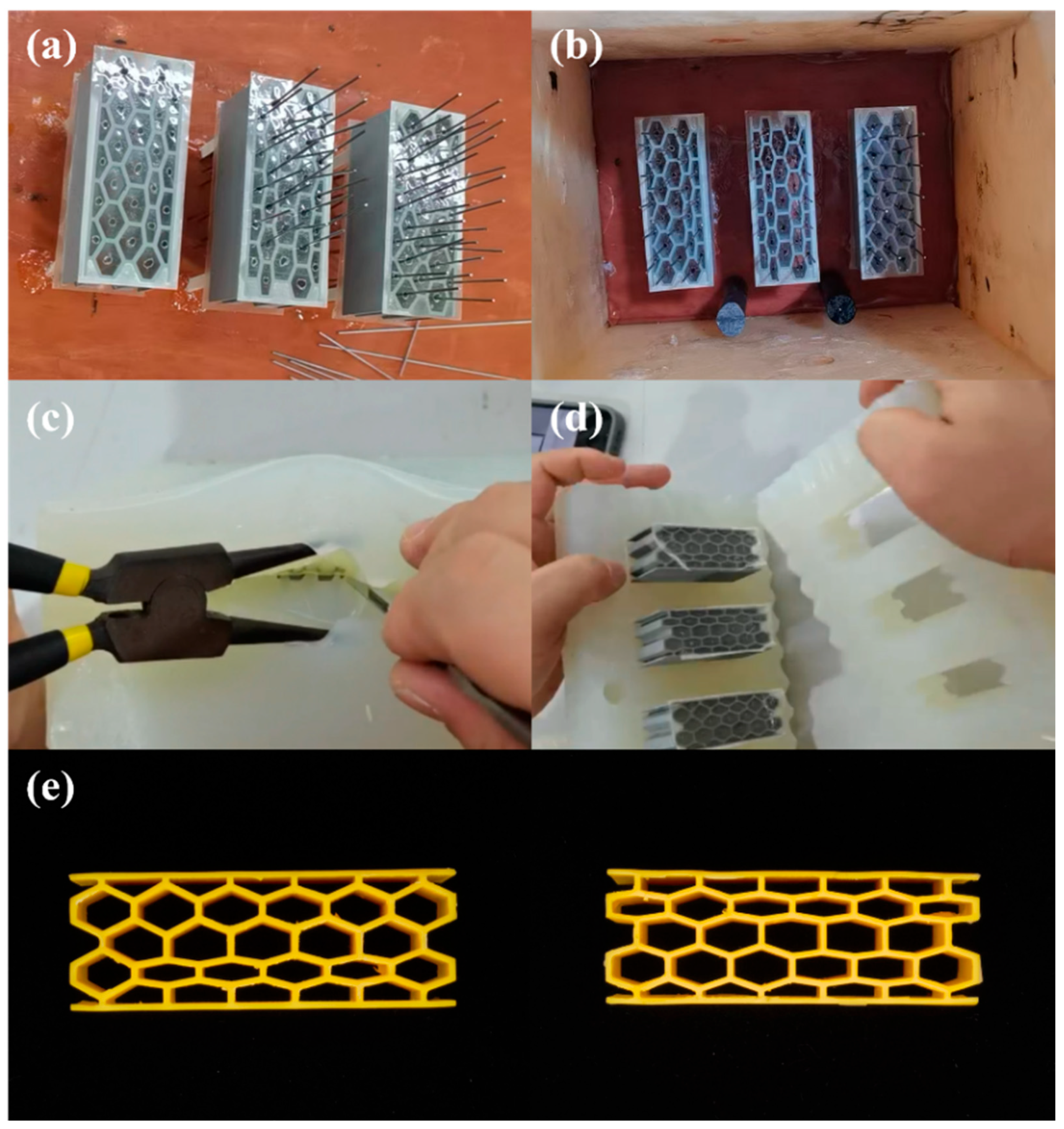 - Shunshun, R.; Zhao, G. Mechanical characterization of a metamaterial with negative Poisson’s ratio under compressive loading: Experimental along with FEM. Mech. Adv. Mater. Struct. 2025, 1–10. [Google Scholar] [CrossRef]