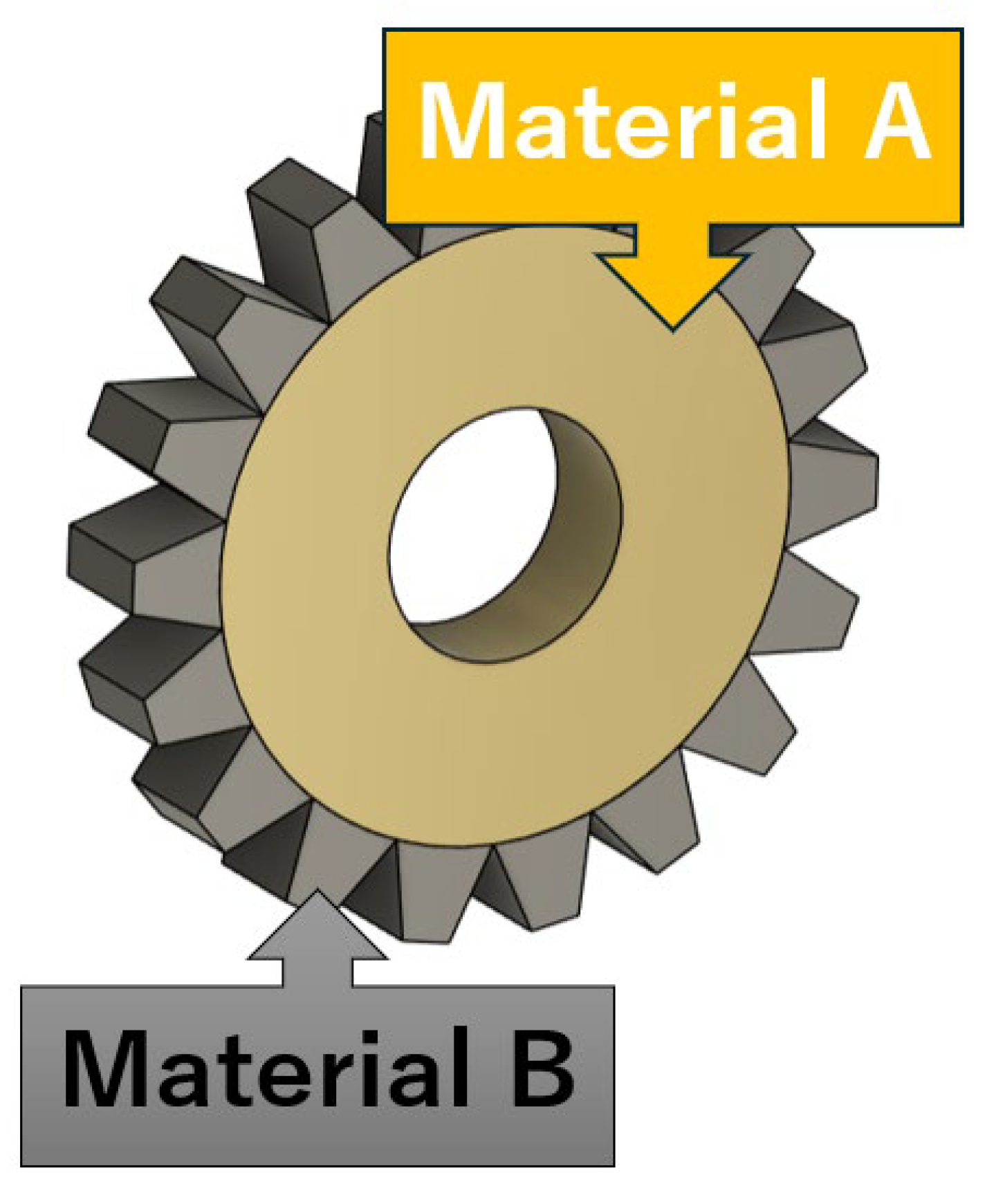 - This study focuses on resins, but materials other than resin can also be considered. For example, in the dental field, photopolymerization-type 3D printers are used, and sports mouthguards made from multiple materials have been reported [38]. It seems feasible to apply this approach in such fields and for models. However, when combined with metals and the like, issues such as thermal expansion are thought to arise [39]. Additionally, it is considered that digital gradient material placement and changing only part of the material in the same layer are also possible.