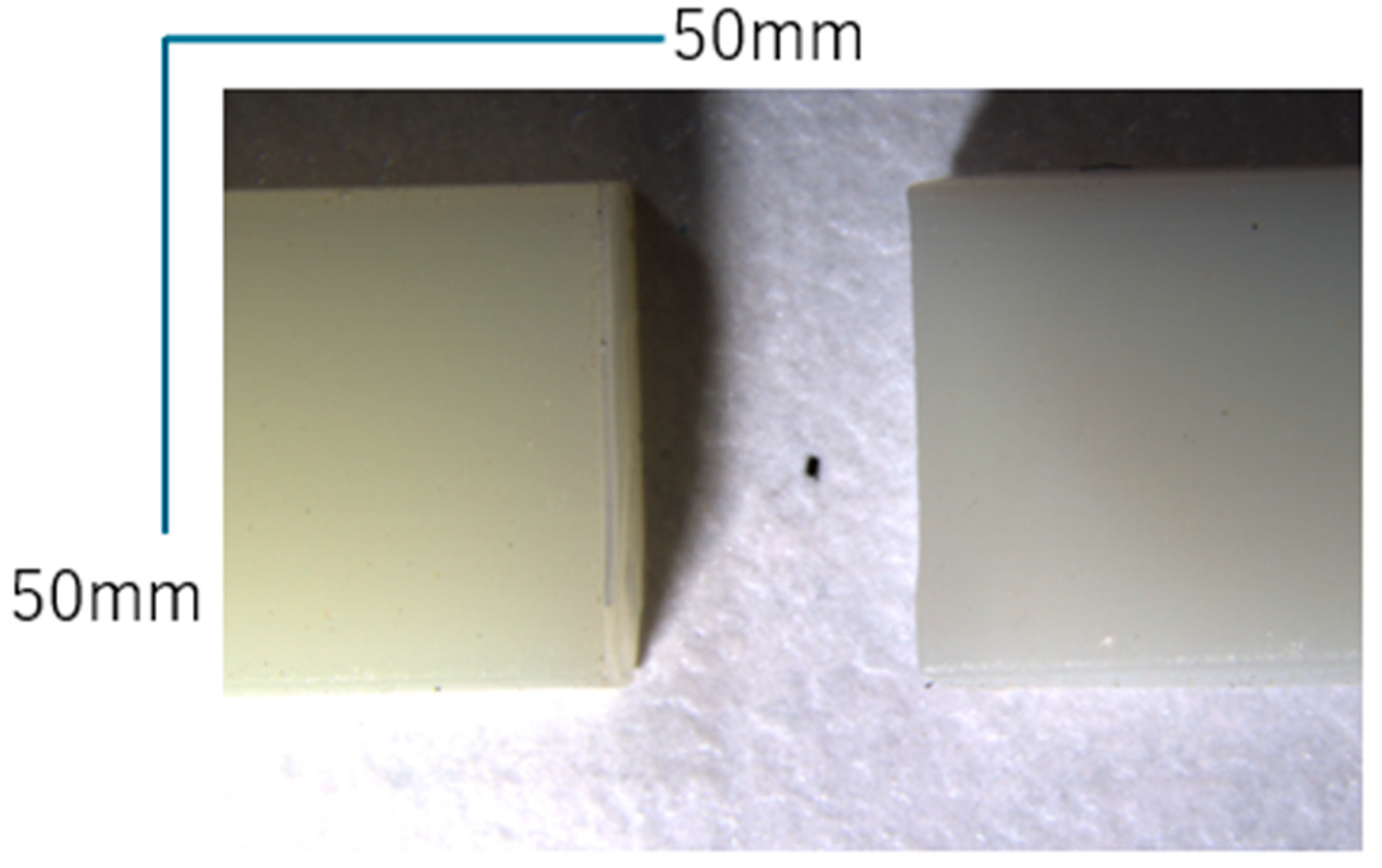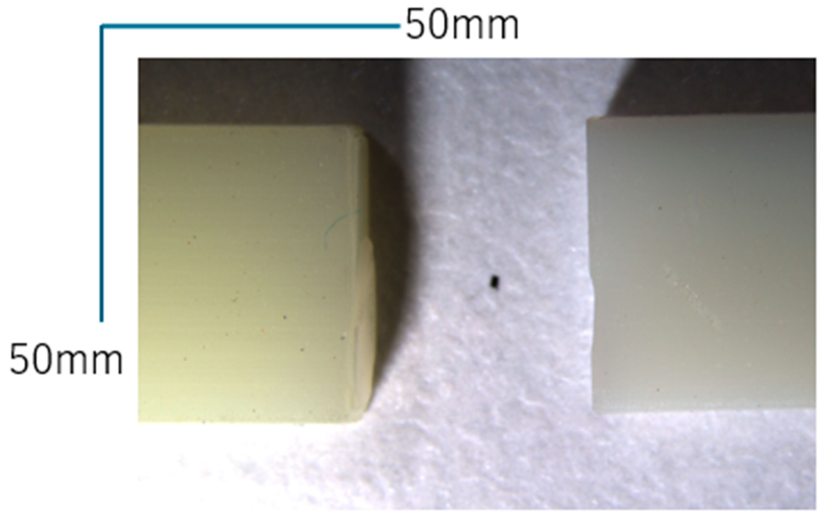 - The multi-material specimens required a longer exposure time (8 s in this experiment) for complete printing than the single-material specimens. In addition, all specimens showed a dimensional reduction at the bonding surface. Although the dimensional reduction is a problem, it is thought that, in the actual development of a multi-material housing, it can be handled by lengthening the exposure time for only the bonding surface;