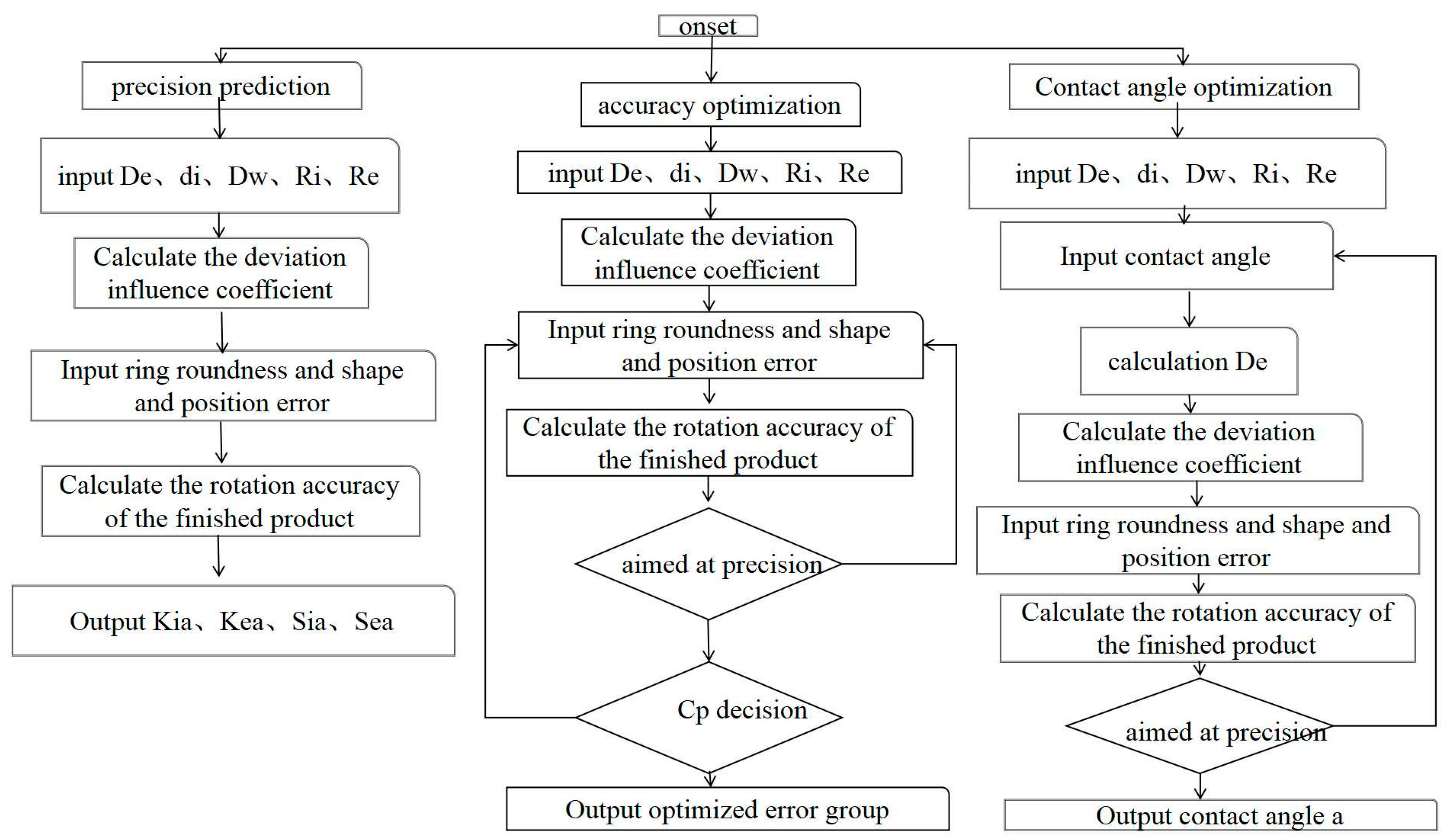 The appropriate contact angle can also be determined according to the rotation accuracy index requirements of the host equipment for the matching bearings. This rotation accuracy prediction and optimization model can economically and efficiently meet the actual production demand, and its process is shown in