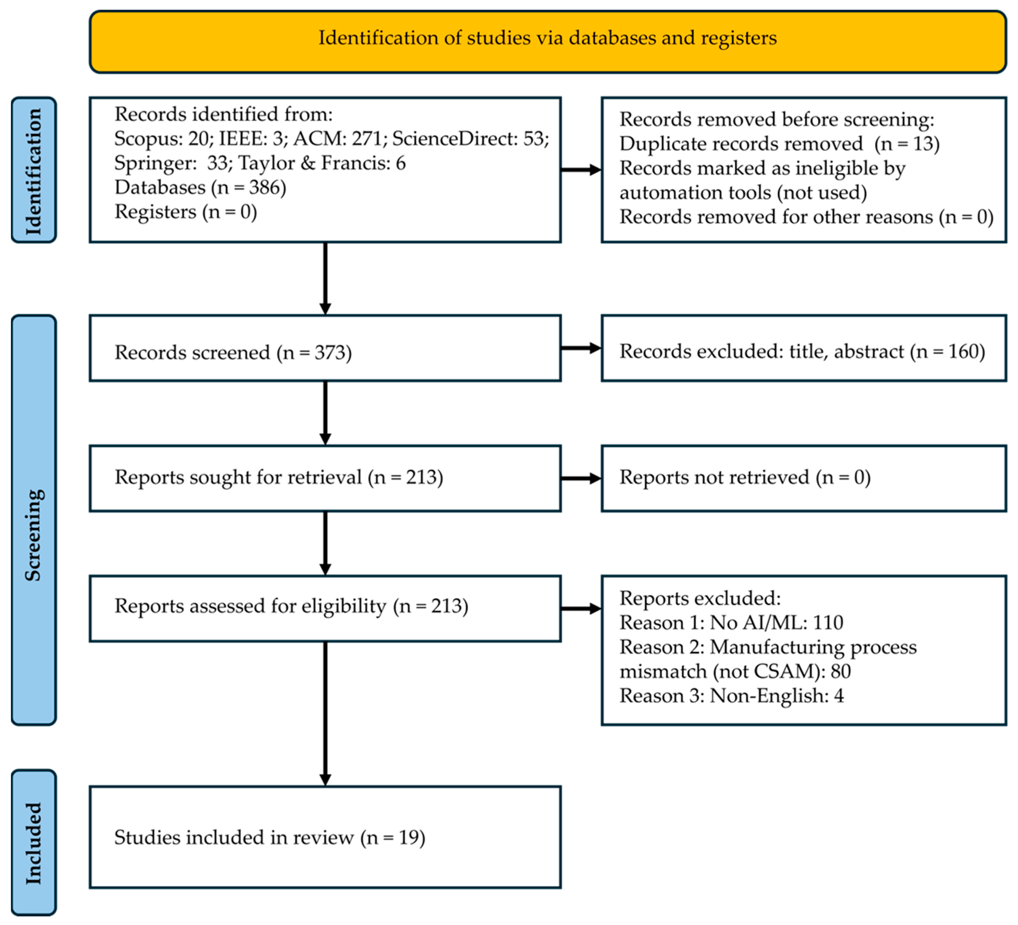 All English-language publications AI/ML applied to CSAM | No AI/ML Manufacturing process mismatch |
