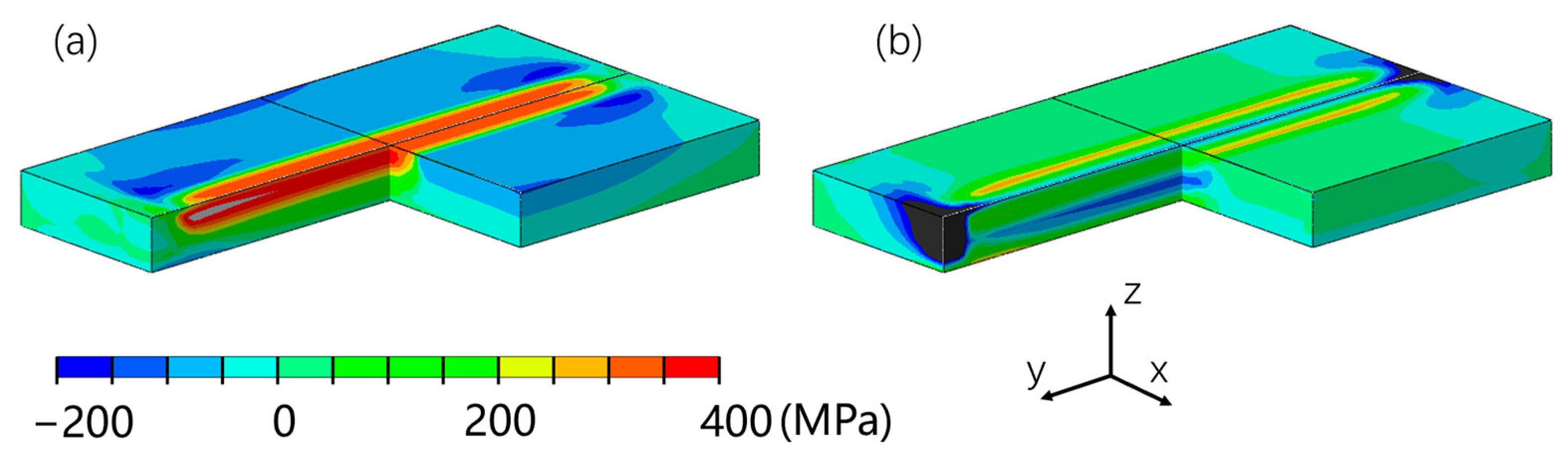 3.1. Evaluation Weldment–Predicted Residual Stress Field