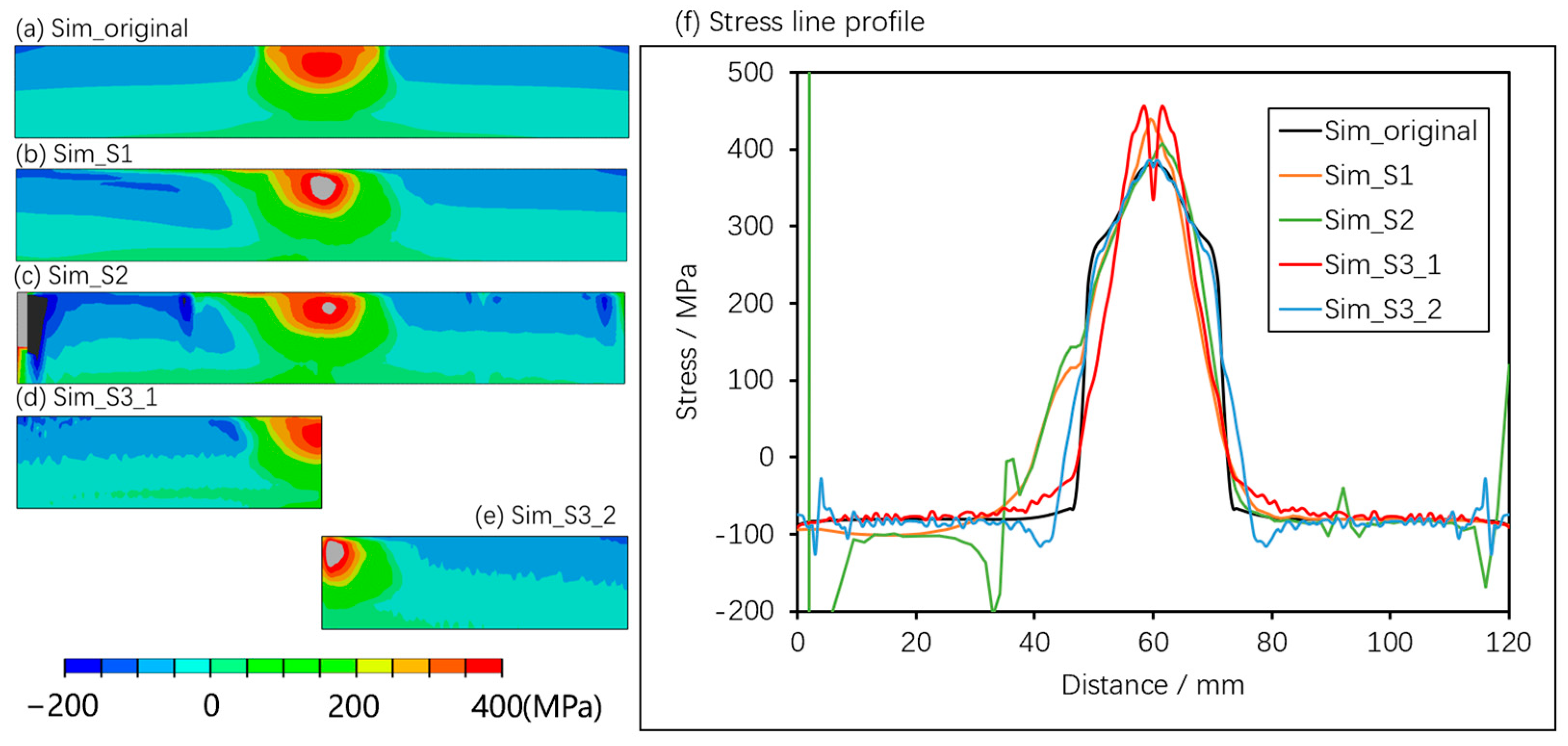 The efficacy of the new approach will be compared with simulated residual stress contour results from a standard single-cut strategy along the transverse direction of the welded plate (see S1 in