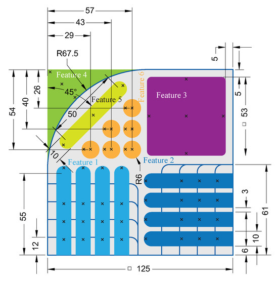 As described in Section 2.2.1, in addition to integrating real processing cases, stepped plates, and line-by-line milling, care had to be taken in planning the milling order to preserve essential elements of the surface after machining in order to subsequently measure its quality.