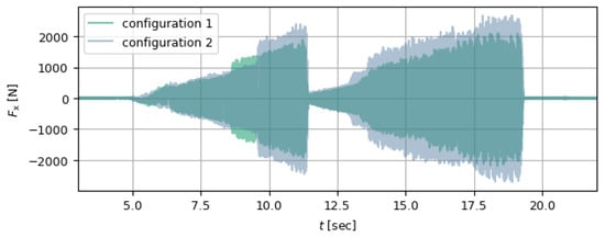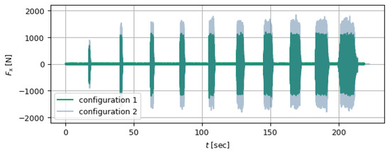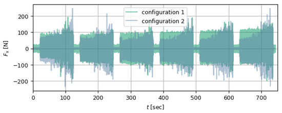In Figure 9, the results for operation 3 are shown. The results for the two different configurations are very similar, while the force measured with configuration 2 is approximately 12% higher on average.