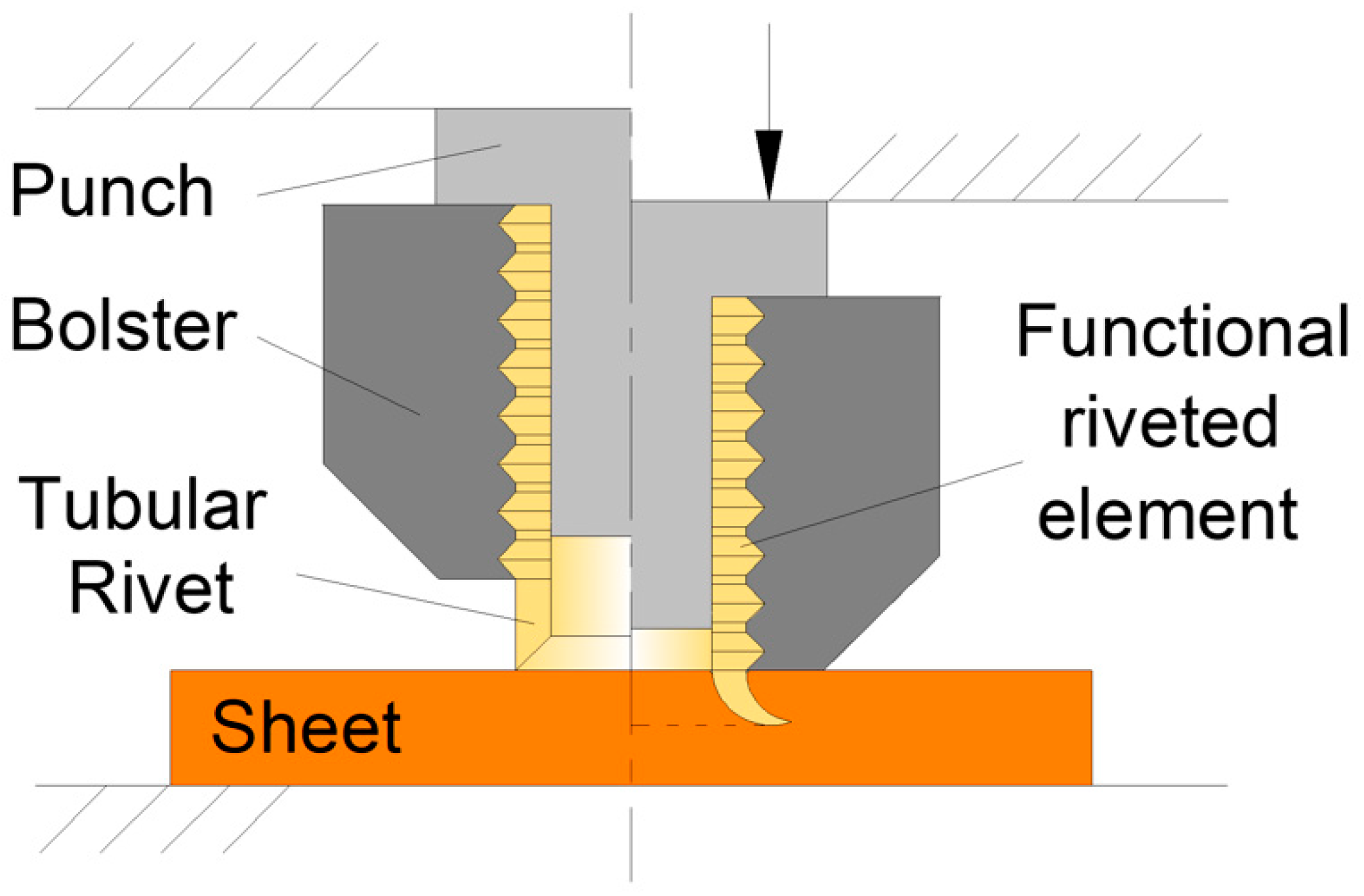 Afonso, R.M.; Alves, L.M. Introduction of Functional Elements with Double-Sided Self-Pierce Riveting. J. Manuf. Mater. Process. 2025, 9, 344. https://doi.org/10.3390/jmmp9100344